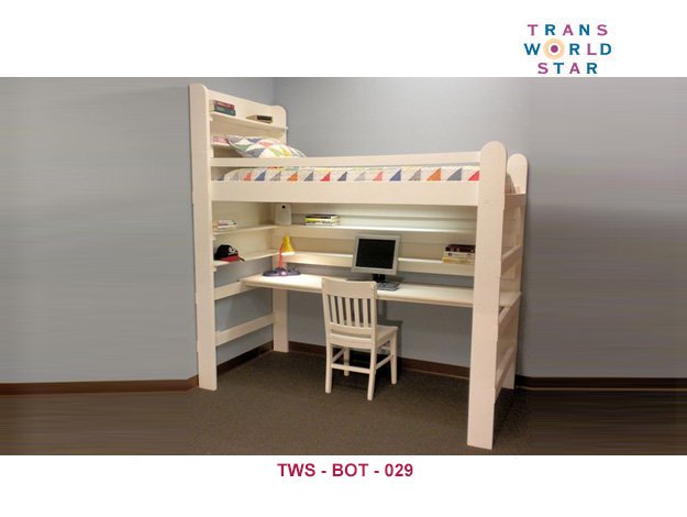 A bunk bed is a type of bed designed for multiple people, typically accommodated in shared bedrooms or dorm rooms. TWS bunk beds usually features two or more stacked beds, with the lower bed often positioned perpendicular to the upper bed. Our Bunk beds have two or more beds stacked on top of each other and can come in various sizes and styles. It is commonly used in dormitories or other