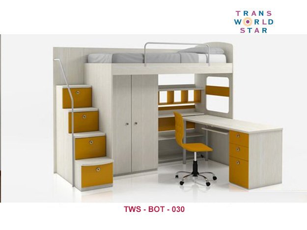 A bunk bed is a type of bed designed for multiple people, typically accommodated in shared bedrooms or dorm rooms. TWS bunk beds usually features two or more stacked beds, with the lower bed often positioned perpendicular to the upper bed. Our Bunk beds have two or more beds stacked on top of each other and can come in various sizes and styles. It is commonly used in dormitories or other