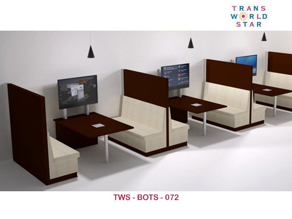Booth seating is a type of seating often found in restaurants, cafes, or other commercial settings. Booth seating is usually built into a wall or partition and can accommodate multiple people. TWS provides the same in various shapes and sizes based on the layout you require. It typically consist of a table and bench seating that is arranged in a booth configuration for privacy and comfort.